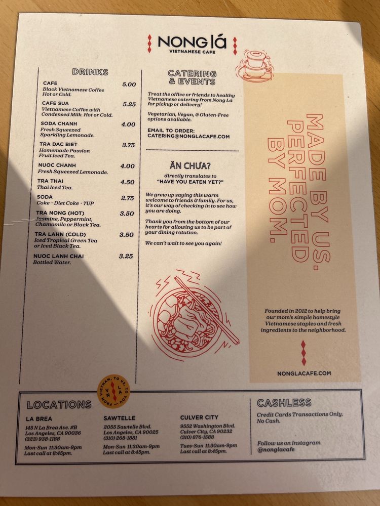Nong Lá Vietnamese Cafe, located in Culver City, CA, is a hidden gem that offers a taste of authentic Vietnamese cuisine. This Asian-owned establishment is perfect for those looking for a casual dining experience with a touch of elegance.